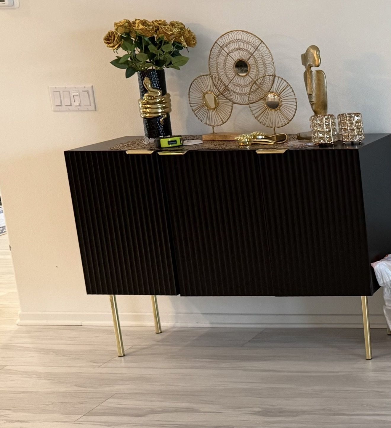 Beautiful Russo Channel black glossy cabinet. Great condition no scratches or dings. 47.25” L x 35.5” L x 15.75” D. Retails for $379