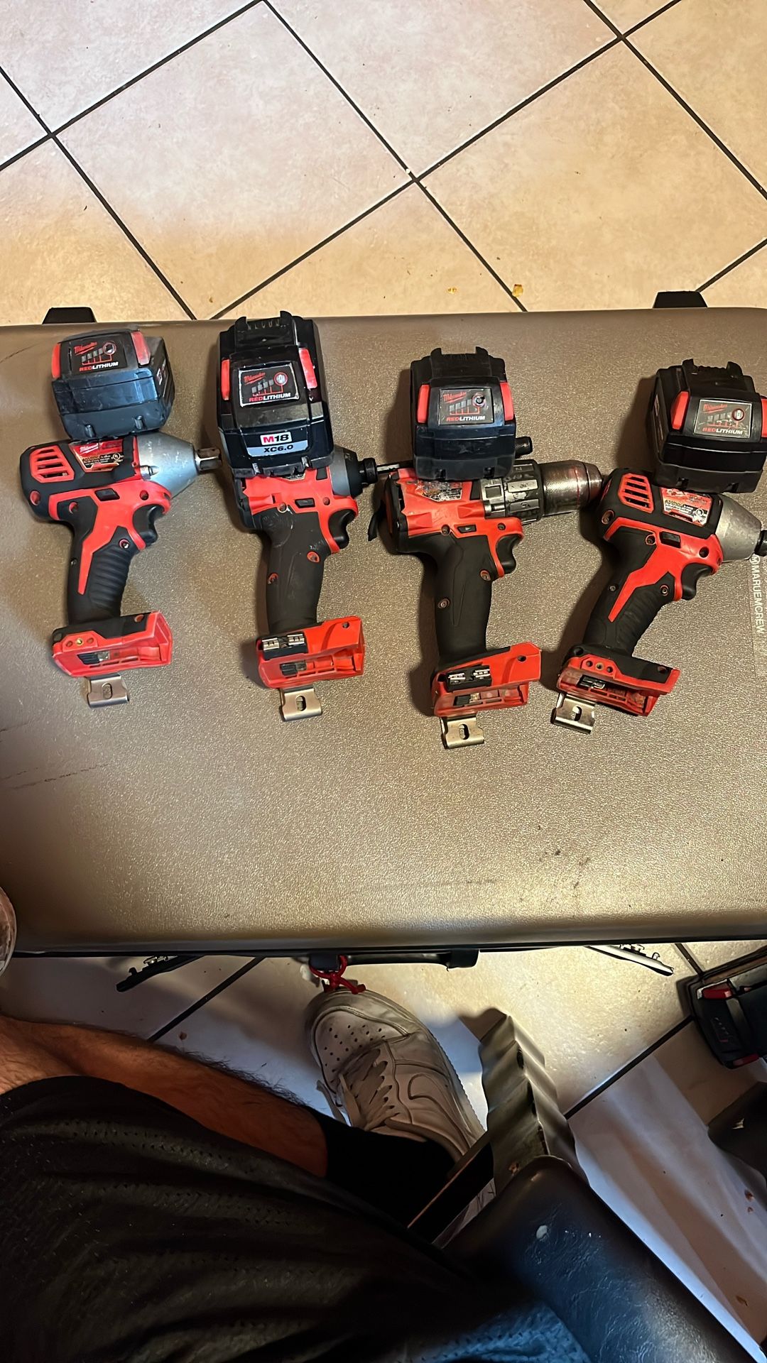 1x impact wrench 2x impact driver 1x Milwaukee M18 FUEL 1/2" Hammer Drill/Driver, specifically the 2804-20 model 2x M18 RedLithium xc 5.O batteries 1x M18 RedLithium XC 4.O battery 1x M18 RedLithium high output XC6.O battery All I. Working condition Work flawlessly LA area Open to offers If your interested in just one drill on any battery lmk more than happy to work something out