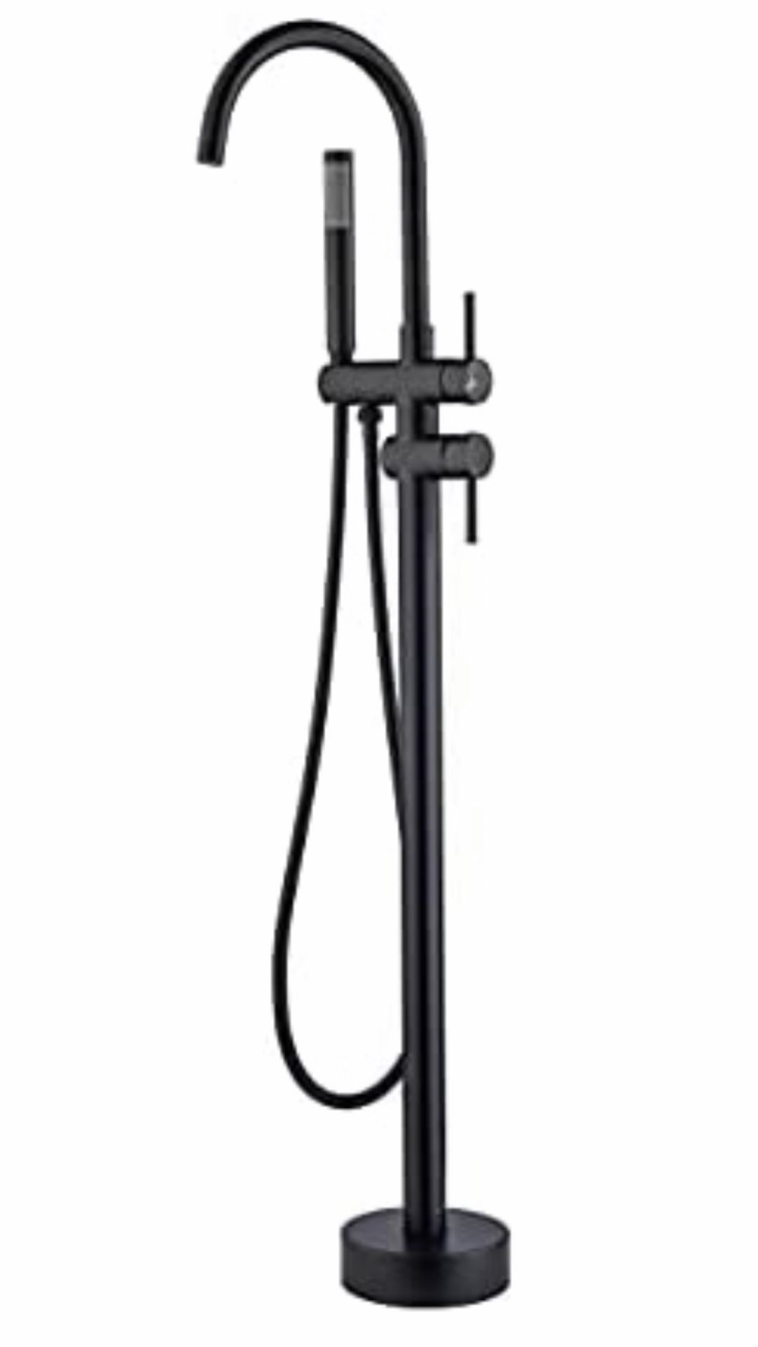 Freestanding bathtub faucet with two handles shower, bathroom tub filler, with swivel spout, floor mounted, matte black