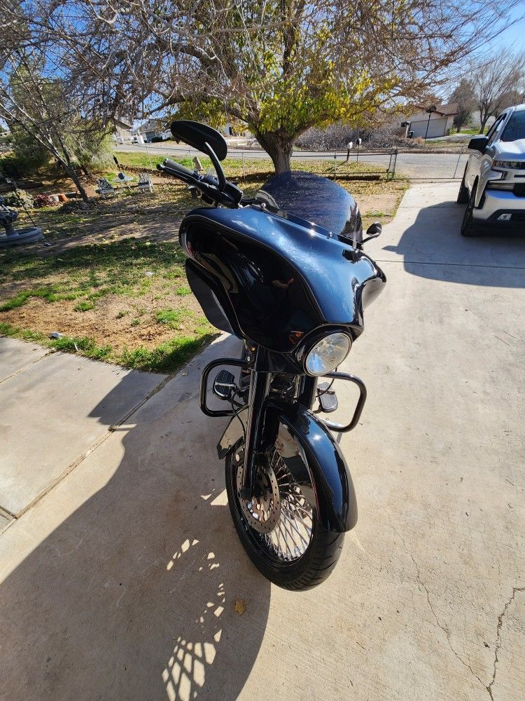 Black on Black street Glide street clean 21' in front rim. 12' in ape hangers 2 into one exhaust 6 speakers system