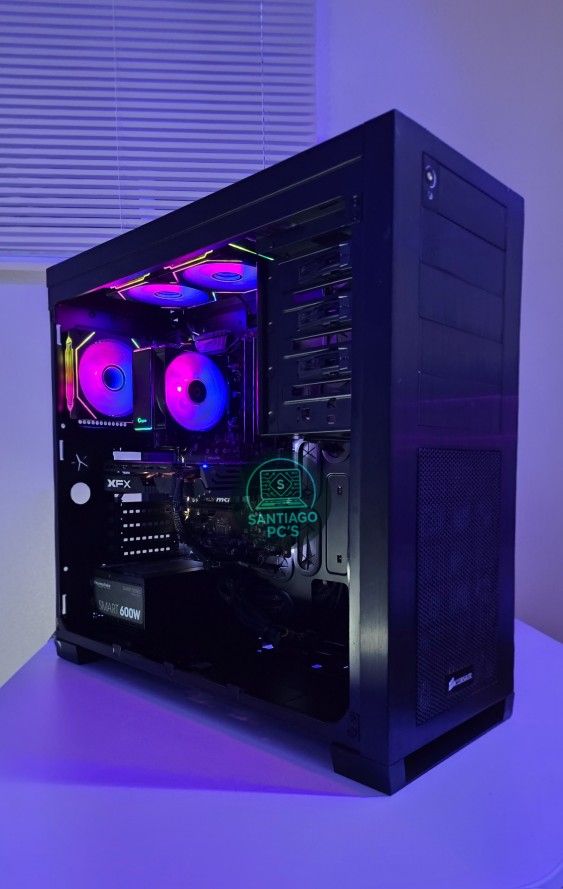 Smooth 1080p Performance • RGB Setup • Fast Boot SPECS ⚙ CPU: Intel Core i5-8500 (6 cores, up to 4.1GHz) ⚙ GPU: AMD Radeon RX 580 8GB GDDR5 ⚙ RAM: 16GB DDR4 3200MHz Dual Channel ⚙ Storage: 250GB SSD — fast load times ⚙ Motherboard: MSI Z370-A PRO ⚙ PSU: Thermaltake 600W 80+ Gold ⚙ Case: Corsair 650D with RGB lighting ⚙ Cooling: 4 RGB fans + 1 front 200mm intake 🎮 Gaming Performance (1080p) Fortnite: 120+ FPS Warzone: 70–100 FPS GTA V: 100+ FPS Valorant: 200+ FPS Apex / R6 / Forza / etc → runs great Perfect for competitive or casual gaming. What you get: ✔ Windows 11 installed & updated ✔ Clean and optimized system ✔ RGB gaming build, looks amazing ✔ Plug in and play — no setup needed 📩 Message me if interested. You can test it before buying.
