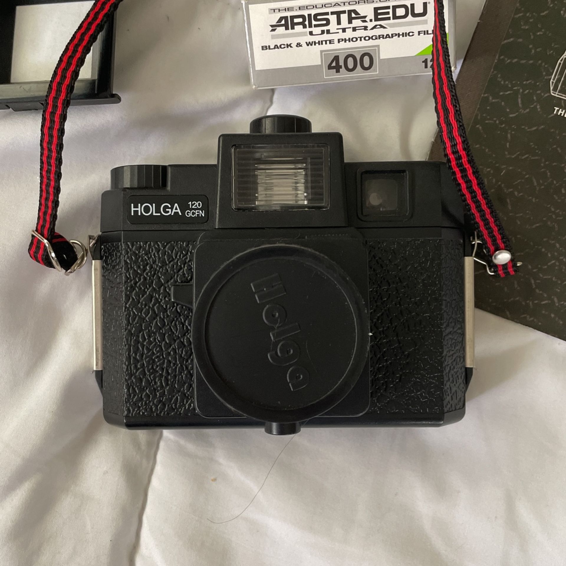 Never used. HOLGA 120 gcfn model / black Includes manual and 1 roll Arista black and white film. 120mm camera