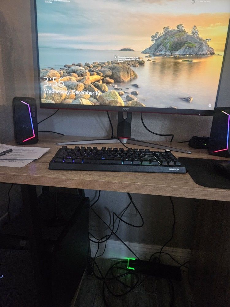 This comes with everything the tower and the monitor mouse keyboard webcam. Good for games like fortnite, PUBG, Apex, Witcher 3 at 1080p medium to high settings, Elden ring at medium settings. Of course it's great for just everyday use for anything else Processor: Intel® Core™ i5-9400 CPU @ 2.90 GHz Installed RAM: 16.0 GB Speed: 2133 MHz Graphics Card: NVIDIA GeForce GTX 1660 Ti Video Memory: 6 GB Storage:447 GB SSD (Force MP510) 466 GB SSD (Samsung SSD 860 EVO 500GB) System Type:64-bit operating system x64-based processor Motherboard: B365M DS3H It has a nice curved gigantic monitor webcam some basic speakers, gaming keyboard and mouse .
