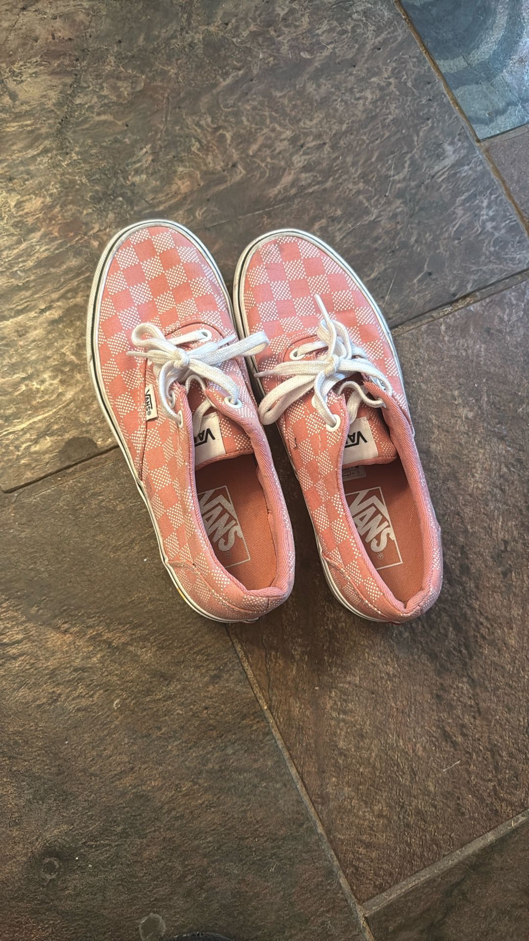 Barely worn Barely Worn Pink Checkered And White Vans - size 6.5 women’s