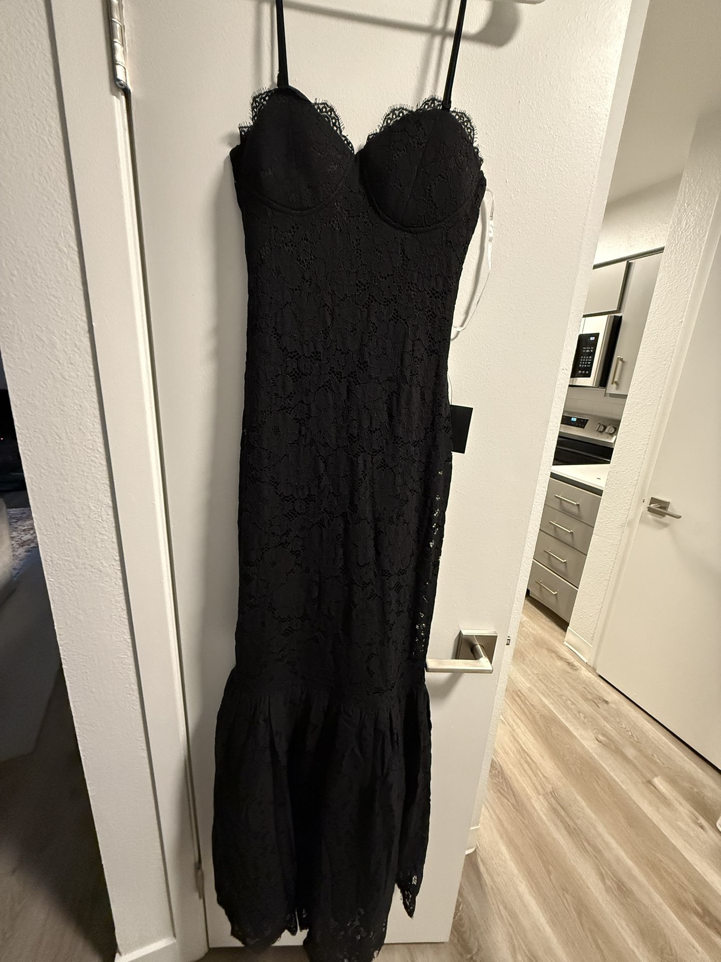 Never worn Lulu’s black formal lace dress. Size small. Tag still in tact. Could not return because of final sale.