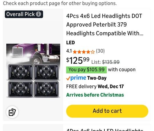 4Pcs 4x6 Led Headlights DOT Approved Peterbilt 379 Headlights Compatible With H4656 H4651 H4652 H4666 H6545 Headlight Replacement for Freightliner Kenworth Oldsmobile Cutlass Trucks