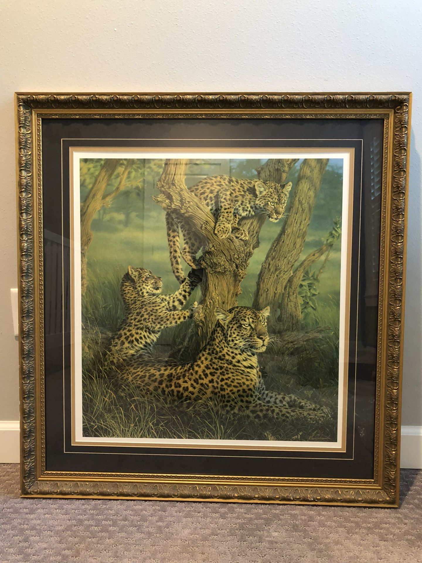 Selling a beautiful, original oil canvas painting with ornate gold frame. Authenticy certificate provided. Size: 34 x 36 inches “Family Outing - Leopards” by Lee Kromschroeder