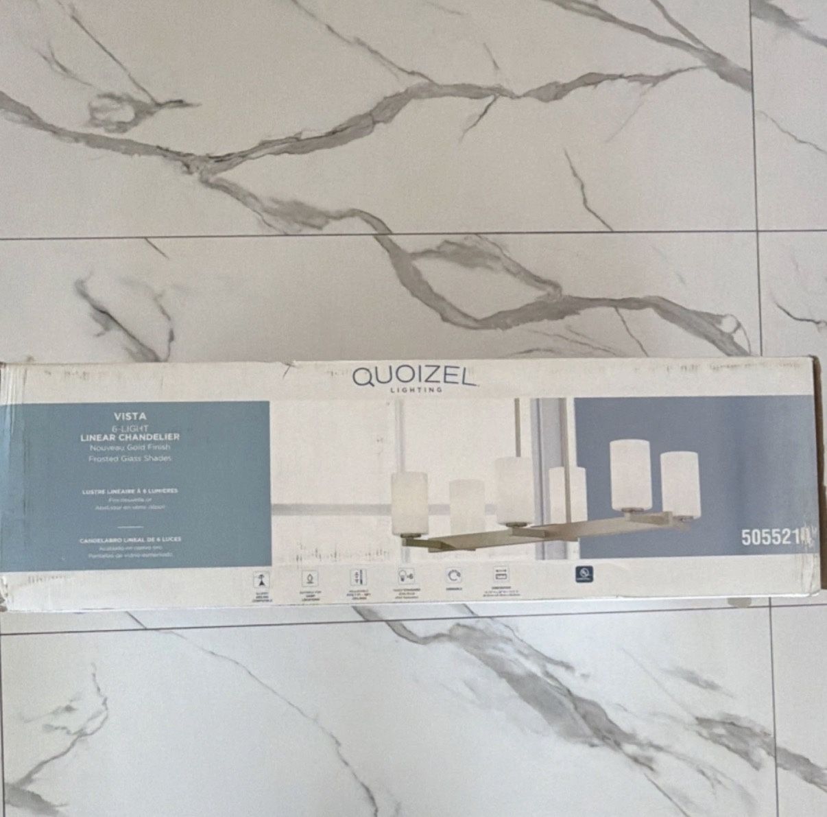 Quoizel Vista 6-Light Linear Chandelier Frosted Glass Shades Nouveau Gold
