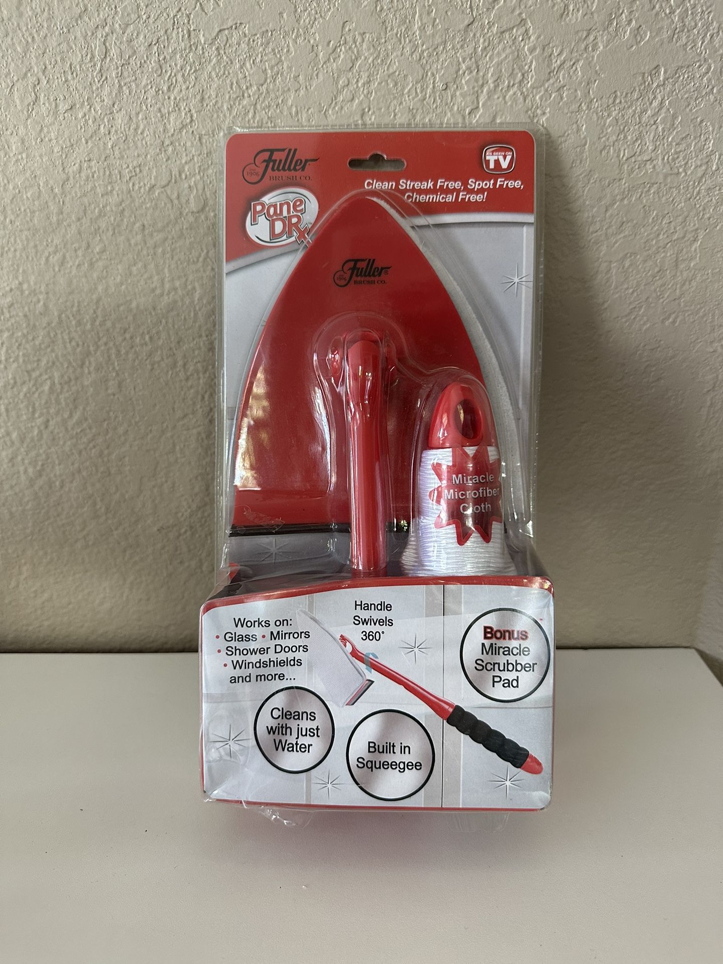 360 Handle Swivels Cleaning Brush Shower Doors Glass Mirrors Brush * Built in Squeegee * 360 swivels handle * miracle microfiber cloth New in original packaging 360 Handle Swivels Brush, Cleaning Brush, Shower Doors Cleaning, Glass Brush, Mirrors Brush