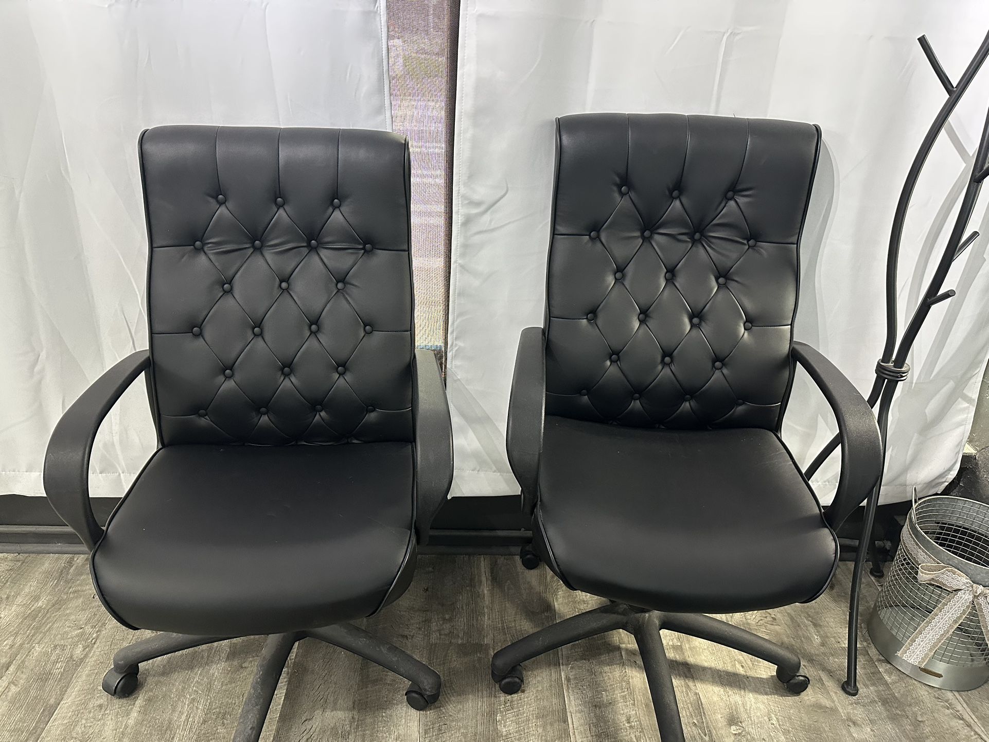 Moving, priced to sell 2 chairs, $50 each Black Spring-Tilt executive chair 27"D x 27"W x 47"H 39 Pounds High Back Executive Chair With Deep Button-Tufted Back Cushions Provides Look Of Elegance With Traditional Styling
