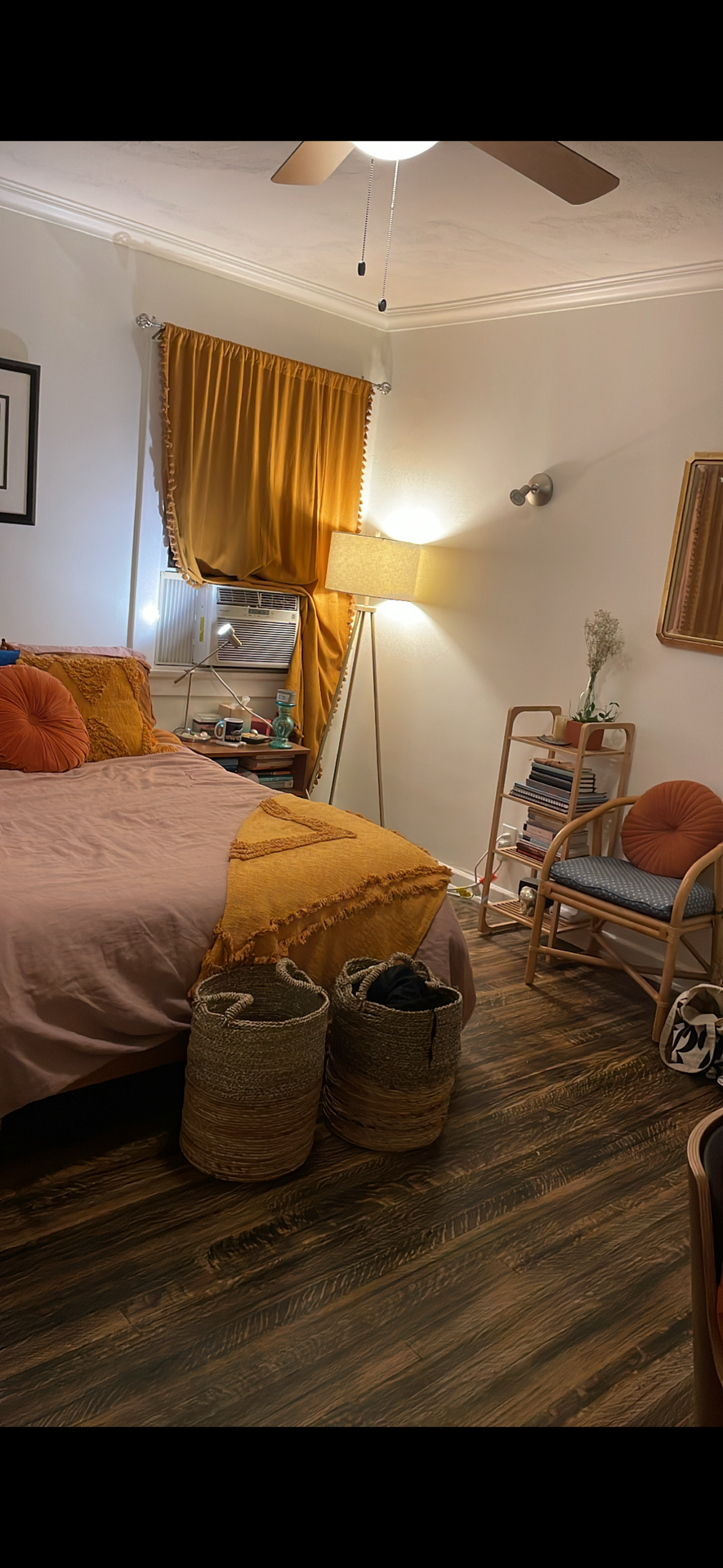 OBO. In great condition, except the leg in the very center of the bed (the one metal part) looks a bit short when the mattress weight is off it. As soon as weight is on it, it is sturdy and I have slept on it like this with no issues for a year! No creaks or wobbles. I’ll disassemble into slats for ease of transport then can be easily re-assembled! No box spring needed, platform bed. Dimensions included in last photo.