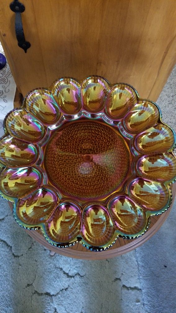 Indiana Glass Amber Deviled Egg Plate