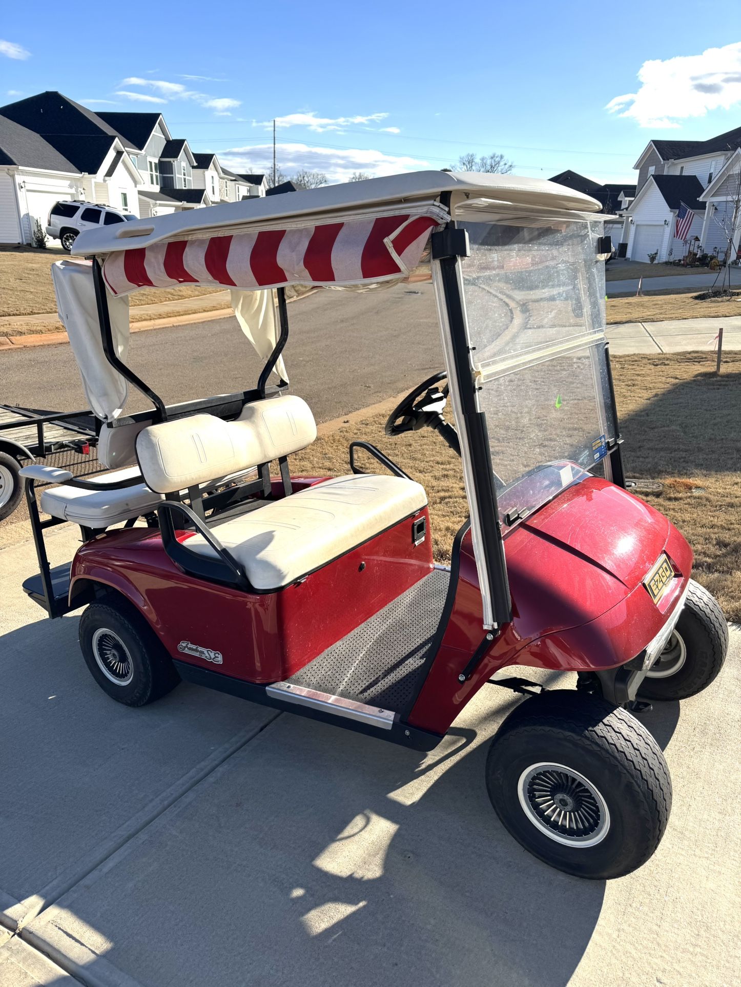 Hi! Selling my nice 48V Club Car Golf Cart Has strong brand new batteries! Golf cart runs flawless and on hills Comes with battery charger $2,600 Can deliver for extra charge. Within 10-15 miles Tags: dirt bike motorcycle Atv Honda crf ezgo club car
