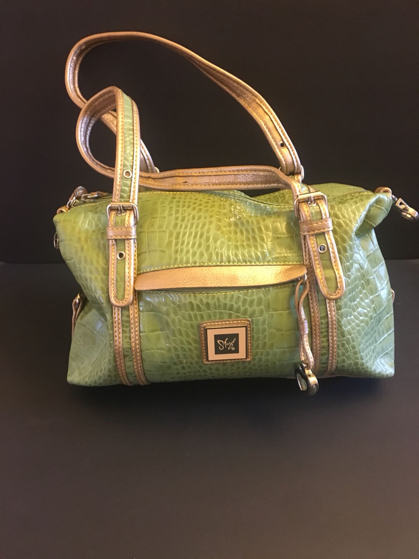Stylish and practical. Comes with adjustable straps and an exterior zipper pocket on the front. Generous interior has 1 zippered pocket and 2 slip pockets. Comes with original Sharif duster bag. Has green leather feet on the bottom. This is a great everyday Purse.