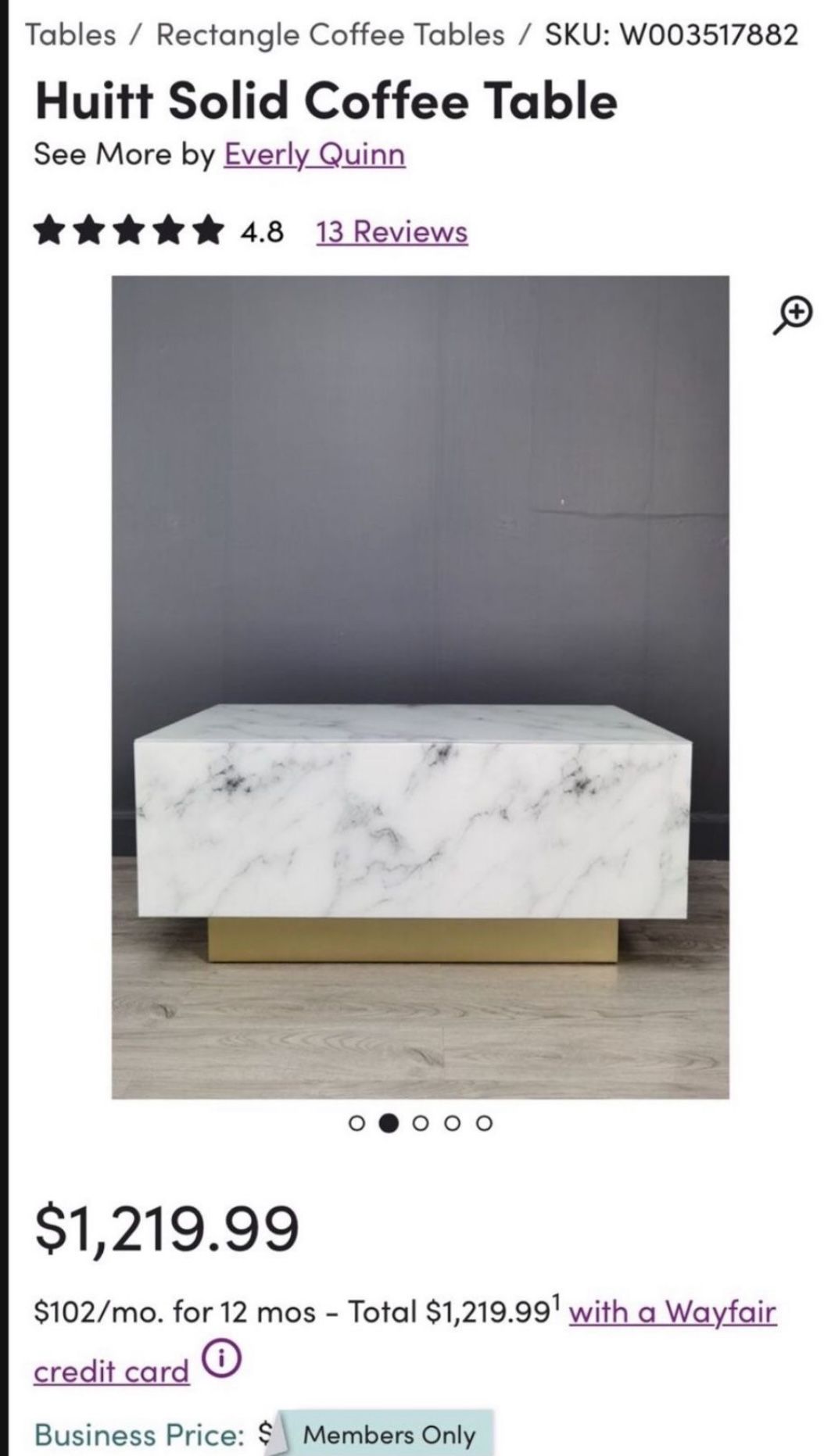 HUITT Coffee Table 18" H x 50" W x 24" D Small chip shown in photo Pickup in Downtown Los Angeles