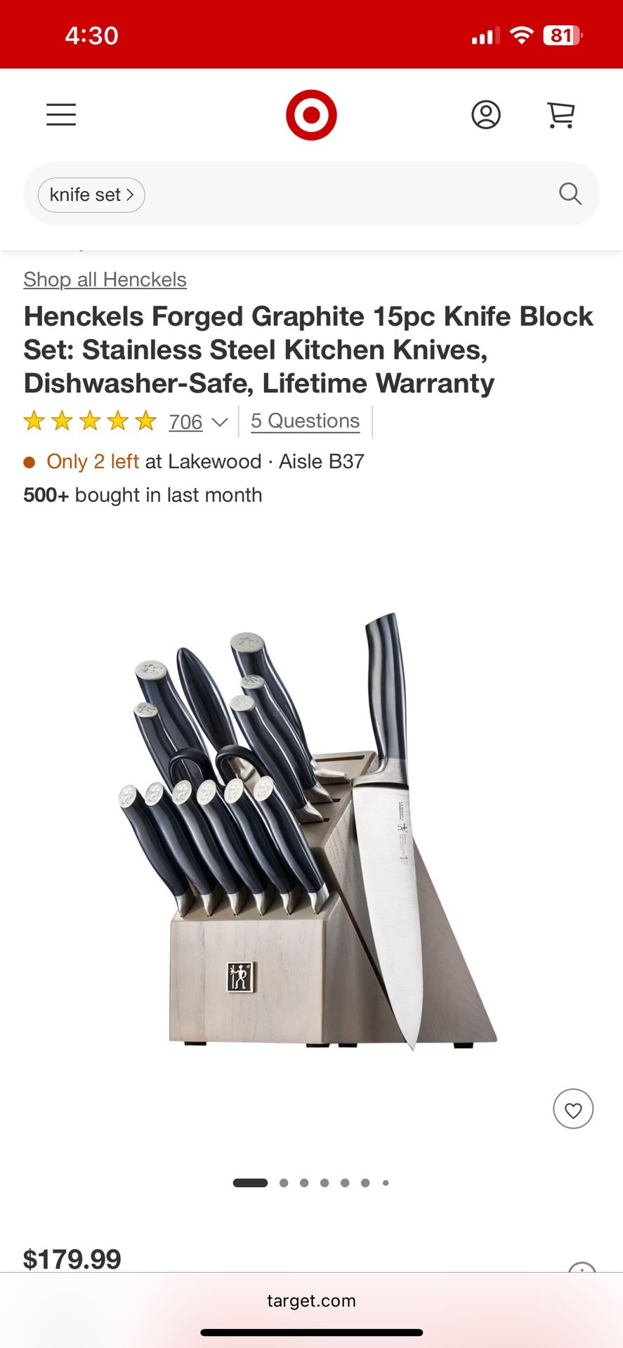 Brand new knife set never used and took em out box. $179 in store, asking $100 or best offer! Will take $80 TODAY ONLY! Meet up in Tacoma!