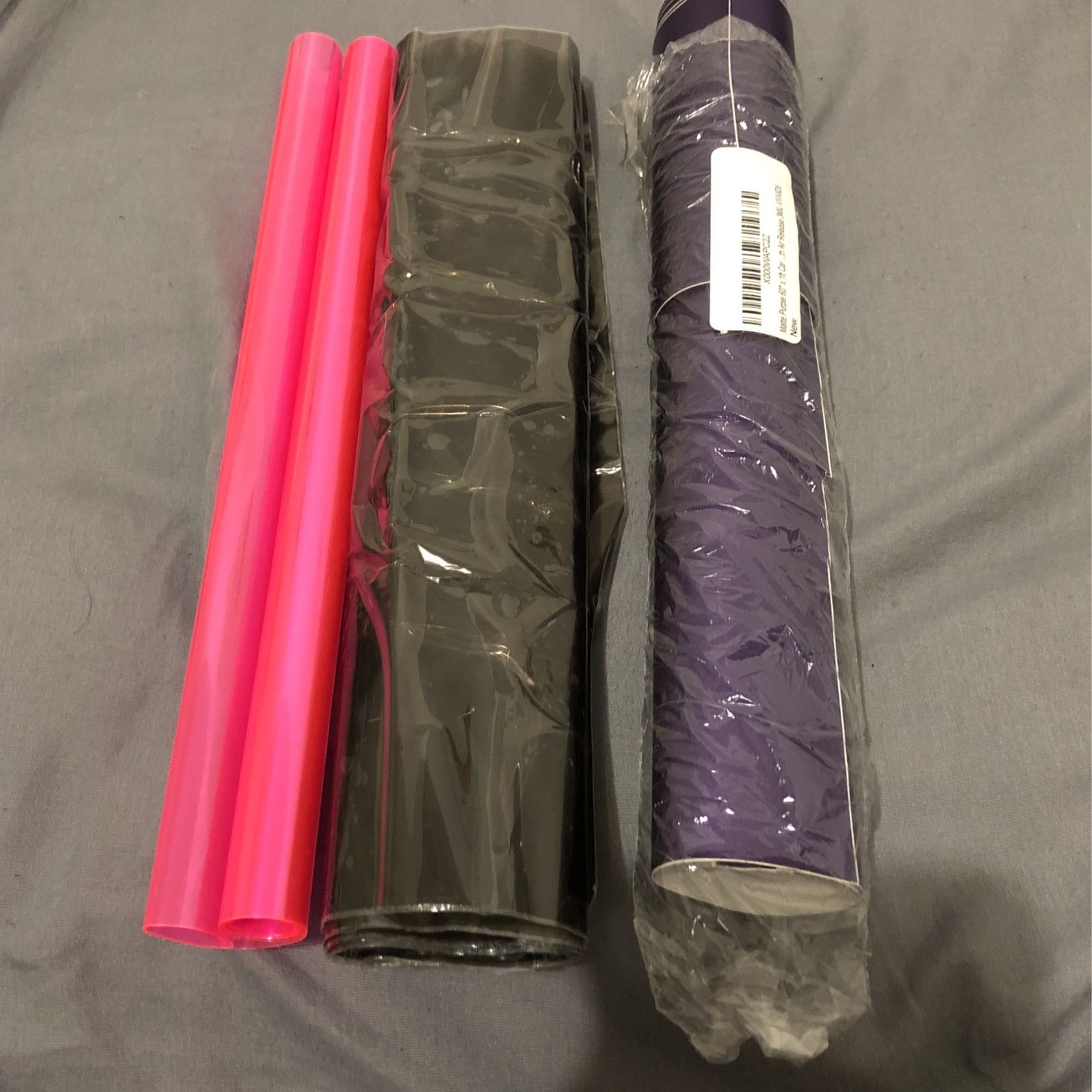Vinyl wrap used for car interior and headlights. Three colors matte purple, pink, black 40% tint. Black never used, the purple 3/4 same with the pink