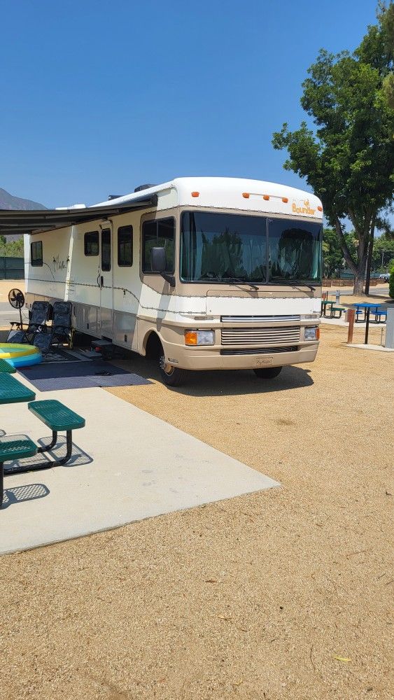 1997 ford bounder 36' feet long with one large slide out. Inside has been completely repainted and remodeled. Has a large flat-screen TV w a digital fireplace/heater. Has dual recliners (took out the uncomfortable sofa bed) has the big block 460 fuel injected. Runs great! With less than 23k miles! Has a new water pump, radiator, serpentine belts, fan clutch New LED lighting for taillights and running lights. Roof was replace in 2022 Tires are in great shape I think the date code is 2021 Both ac units work and are nice and cold. Refrigerator works great stove works great. DVD PLAYER Blurtooth SOUND BAR No leaks! It's a nice rv. Just too big for us. Willing to swap/trade for something under 30 feet. Take a look at the pictures. I store it in wildomar. About 10 minutes from murrieta. Storage available as well for 150 a month
