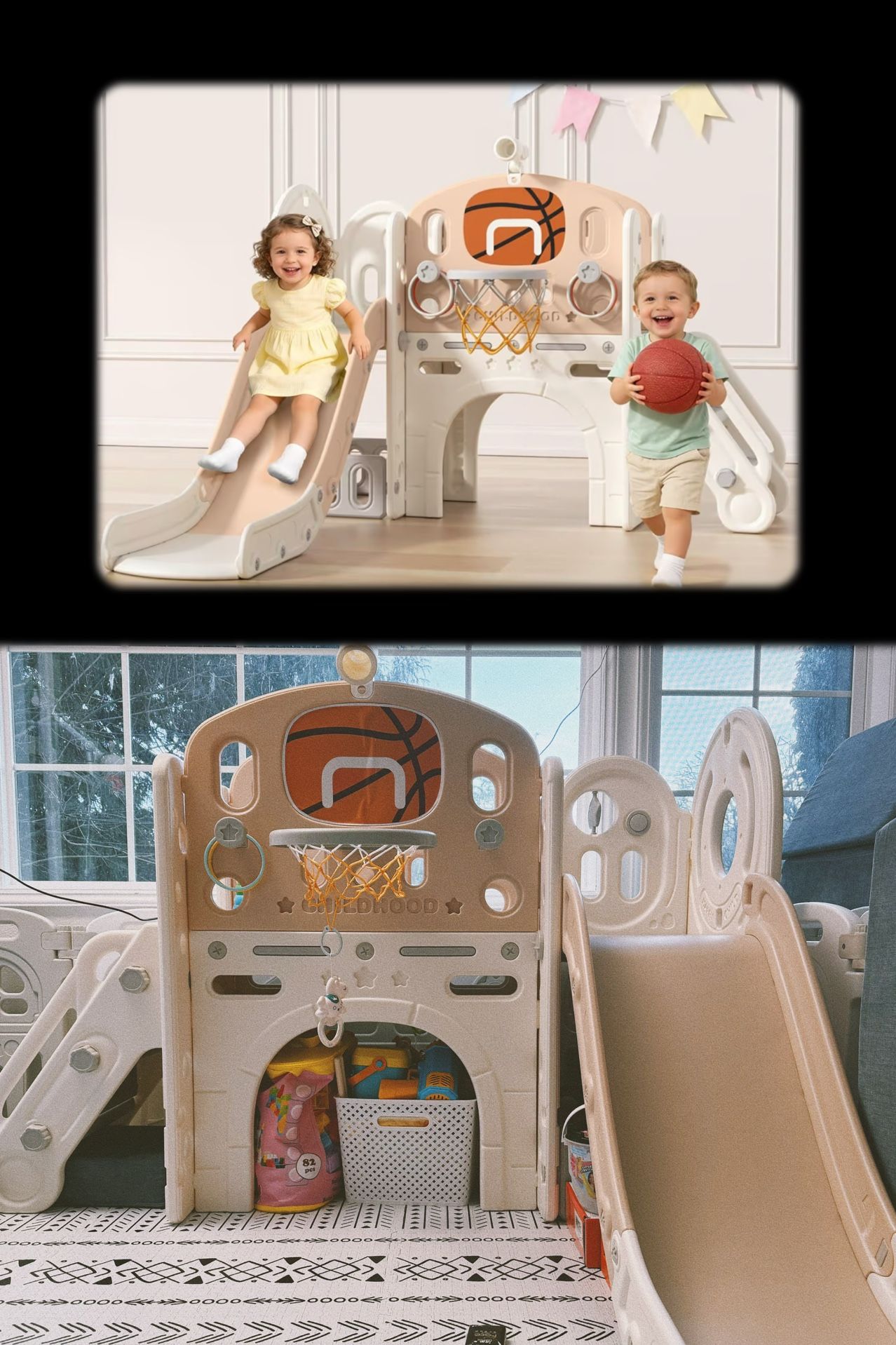 Toddler Slide, Baby Slide for Toddlers Age 1-3 with Ring Toss, Basketball Hoop and Telescope, Indoor Outdoor Playset Playground Beige Coffee Was 148 now 50