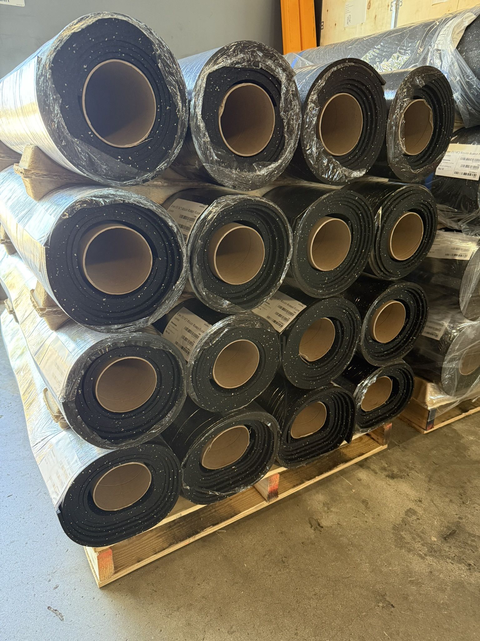 SEE ALL SIZES AND OPTIONS BELOW 4' x 16' Multi-Speck: $127 ($1.99 sq ft) 4' x 25' Multi-Speck: $199 ($1.99 sq ft) 4' x 50' Multi-Speck: $398 ($1.99 sqft) 4' x 25' Solid Black: $229 ($2.29 sq ft) 4' x 25' Grey-Speck: $229 ($2.29 sq ft) 4' x 25' Blue-Speck: $229 ($2.29 sq ft) 4' x 25' Red-Speck: $229 ($2.29 sq ft) Visit our store in Riverside, or check our website for more information! 115 West La Cadena Drive Riverside, 92501 Mikes Fitness Equipment . Com Check our website for more information! Made from super durable & odorless recycled rubber, this is by far the most popular choice of our customers. The multi speckle does a great job to add a little flare to your gym, in addition to hiding dust & debris to make your gym look much cleaner. This is the same stuff we use in our showroom! 8mm (5/16") thick to withstand even the most abusive environments. 4' x 16' Rolls are our most popular size for garage gyms. They can be easily chopped in half, put both pieces together, and make a perfect 8' x 8' square, which is perfect for any home gym/rack setup. Need more space? Get 2 rolls and make an area 8' x 16'. Or, trim to whatever space you need with a simple box cutter or razor blade. Need even more space? Grab a 25' or a 50' roll! This is the same thickness/material in the major commercial gym chains! Our rolls are just as dense and durable as 4'x6'x3/4" mats. They are also much easier to clean. Our rolls are odorless, and are even reversible for double the durability and longevity!