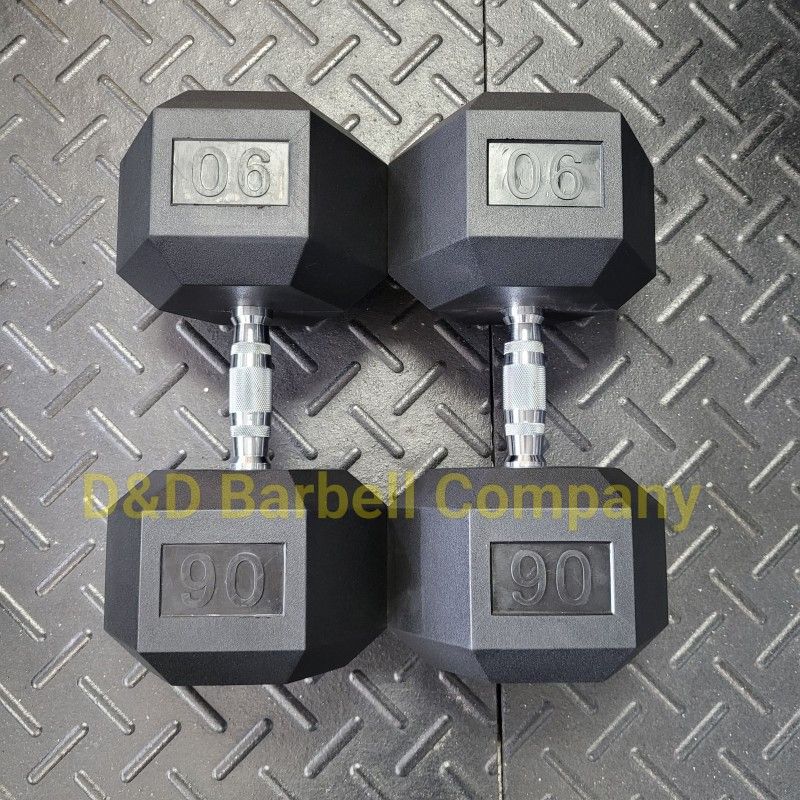 NEW 90lb Rubber Hex Dumbbells PAIR Weights