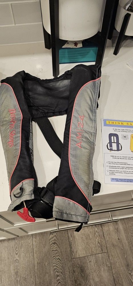 Bass pro inflatable life vest am/24. 3-4 years old.