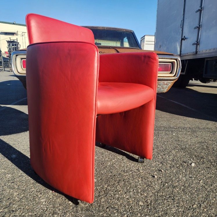 Selling each chair for $150. If you buy all 6 I'll do $800. The chair from Italian producer Calia Italia. The model is made in modern style. The walls were covered in red leather from a collection factory. Internal filling - polyurethane foam of different firmness. Legs are complemented by the wheels
