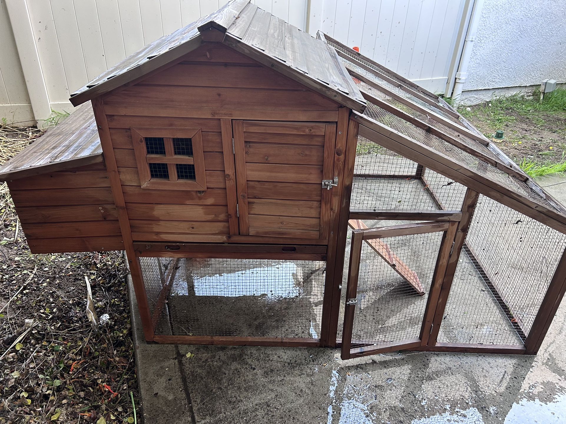 Never used only kept outside has 4 doors a ramp nest in back door on top of nest