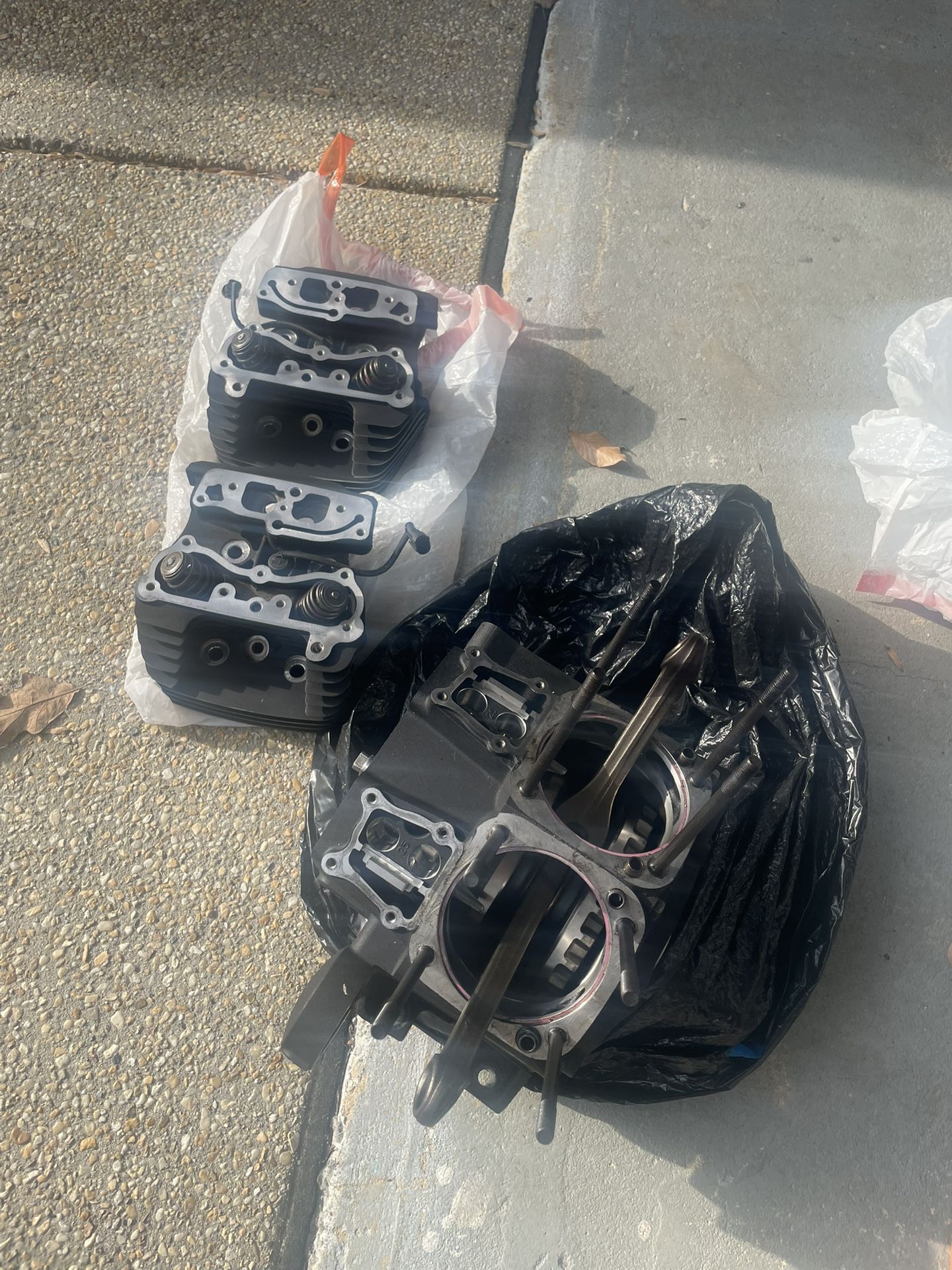 Removed because of bad rod bearings (were super tight) so will need a flywheel. Have both left and right crankcases and cylinder heads sold as is $200 motor was a 103”