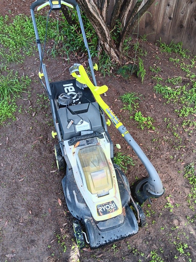 Working Ryobi 18v 16inch Mower and string trimmer. Throwing in a small battery and charger Picture of Approx location Cash only Message me with time you'd like to pick up