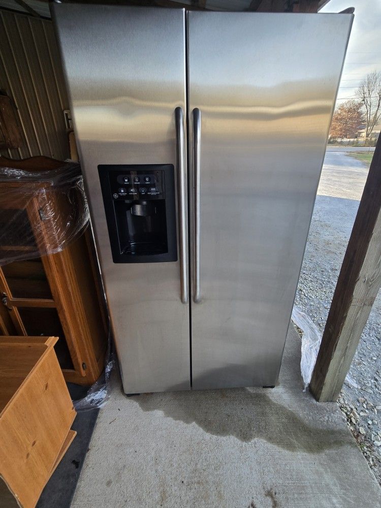 GE Side-by-Side Refrigerator – Stainless Steel Good working GE side-by-side refrigerator. Model GSS25XSRB. Keeps food cold and freezer works great. Clean inside and out. Ice and water dispenser included. Approx. 25 cu ft – lots of space. Manufactured 2017. Great for a home, garage, or rental. Price: $600 Located in Farmington Ar Message me if interested.