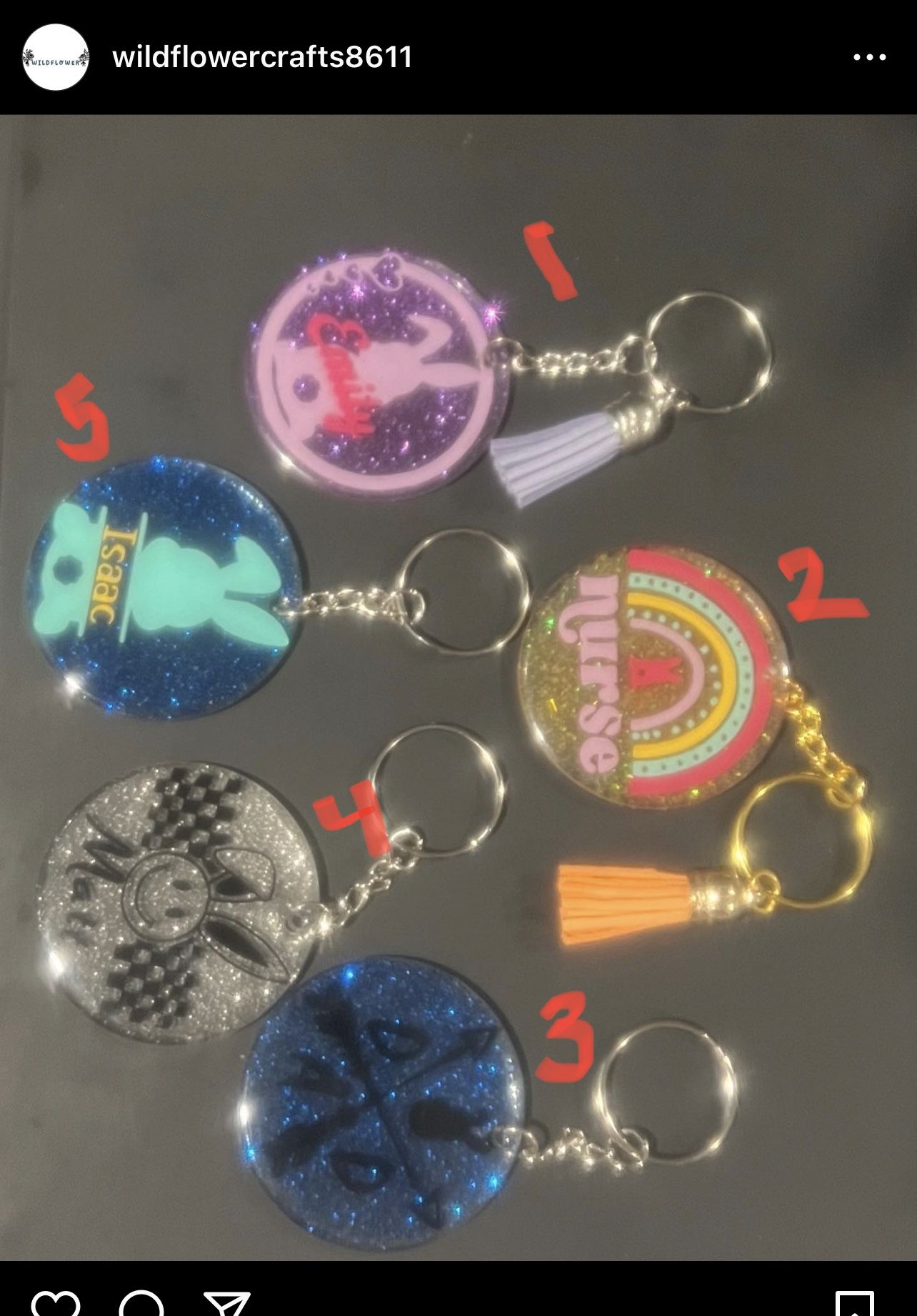 Select which style and message me the name you would like on it. Handmade. Resin keychains.