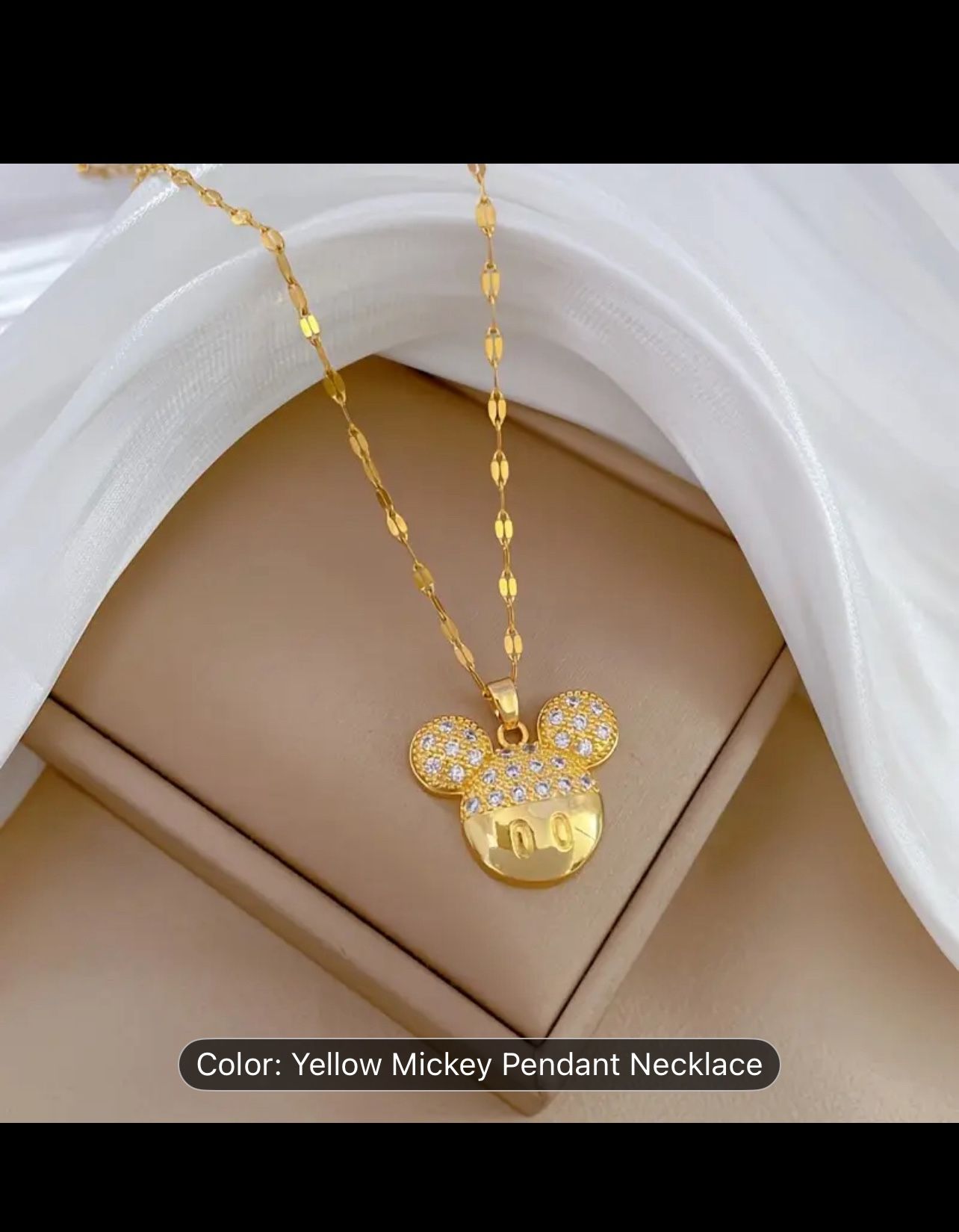 Tropicana & Hualapai. New in a bag. [Mickey Mouse Charm Necklace] Elegant Mickey Mouse Charm Necklace for Women - Golden Titanium Steel Pendant with Sparkling Stones, Ideal Gift for Birthdays, New Year, and More, Festive Accessory|Playful Accessory|Durable Jewelry, Mickey Mouse Accessories