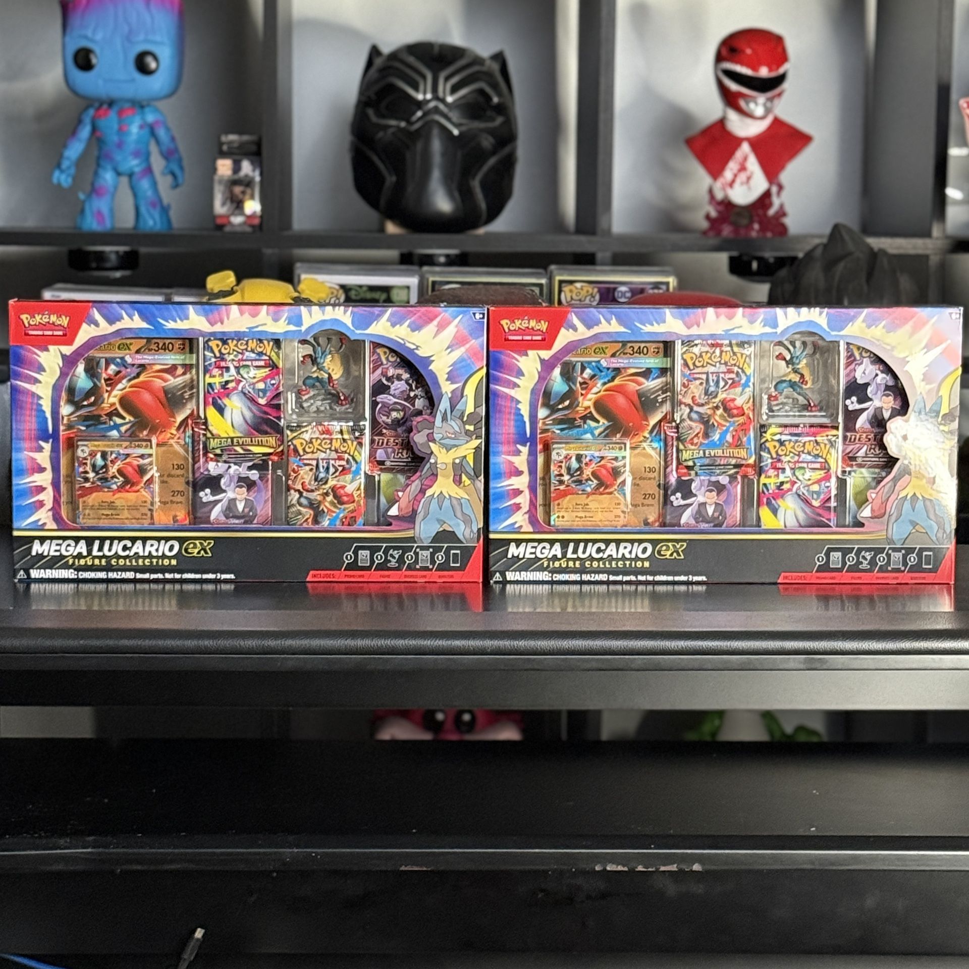 Pokémon TCG: Mega Lucario EX Premium Collection Box – $70 for both (Brand New/Sealed) 2 available $38 each Selling a brand new, factory-sealed Mega Lucario EX Premium Collection Box. Box is in excellent condition — no dents, tears, or corner damage. Perfect for collectors, Lucario fans, or anyone looking to open packs with a premium promo. Includes: • 1 Mega Lucario EX foil promo card • 1 Lucario foil card • 1 oversized Mega Lucario EX card • Multiple sealed Pokémon TCG booster packs • Collector display packaging Price: $70 Pickup in: Spring Valley Payment: Cash, Zelle, or Venmo accepted. Message me if you’re interested!