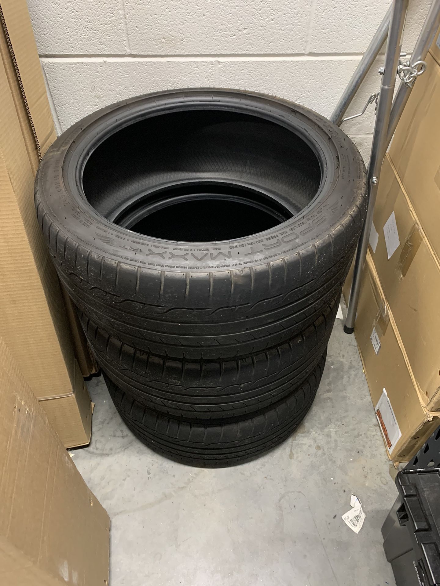 3 - 245/40/18 Dunlop sport maxx rt tires. 7/32 tread left, nothing wrong with tires just needed a new set after one tire had several nails in it. Fits a 21 wrx and brand new the tires are $372 as seen on the last picture.