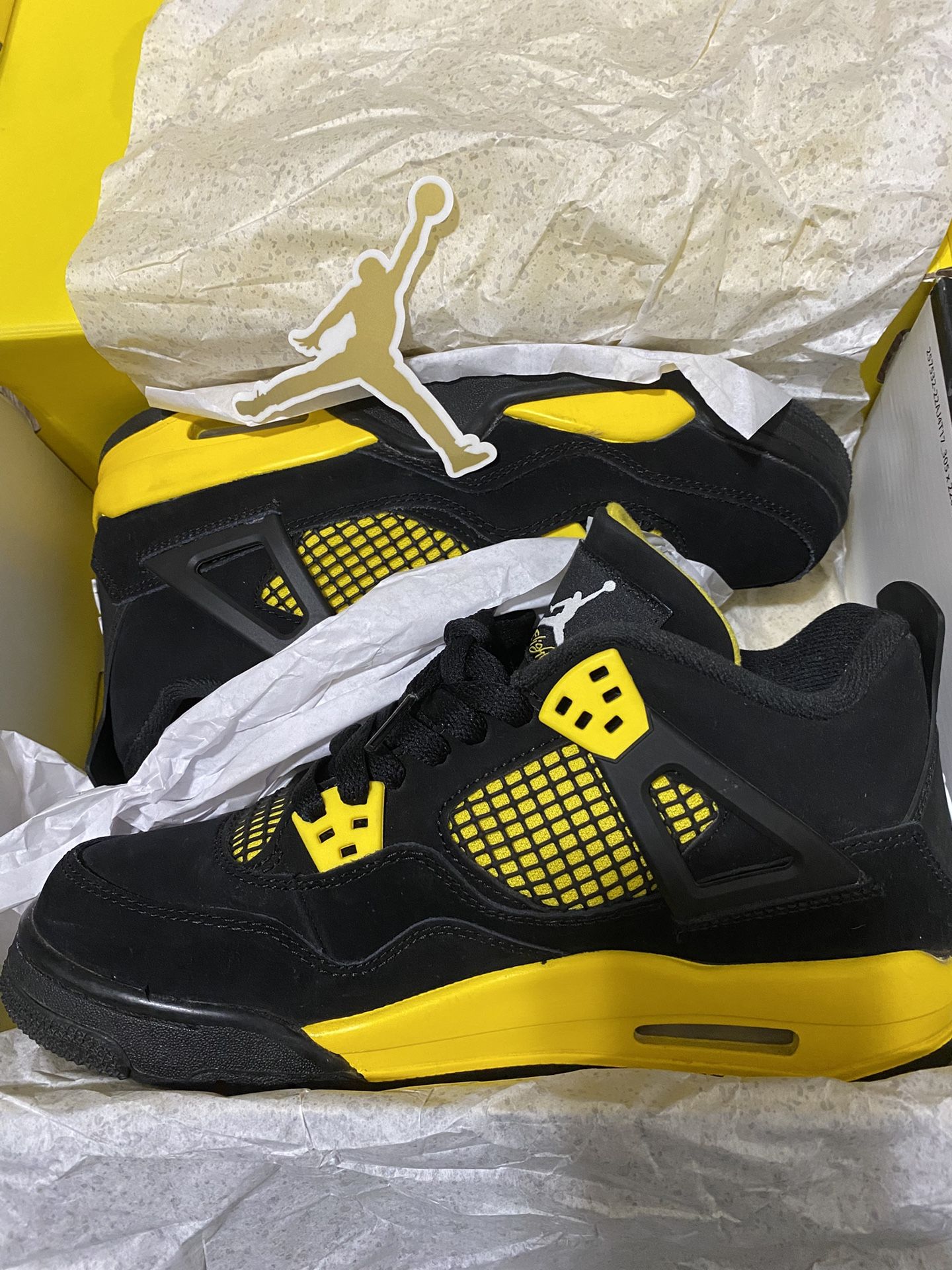 Air Jordan 4s retro thunder with box and sticker. 8.5 in women's and 6.5 in mens. OBO. If the post is still up they are still available.