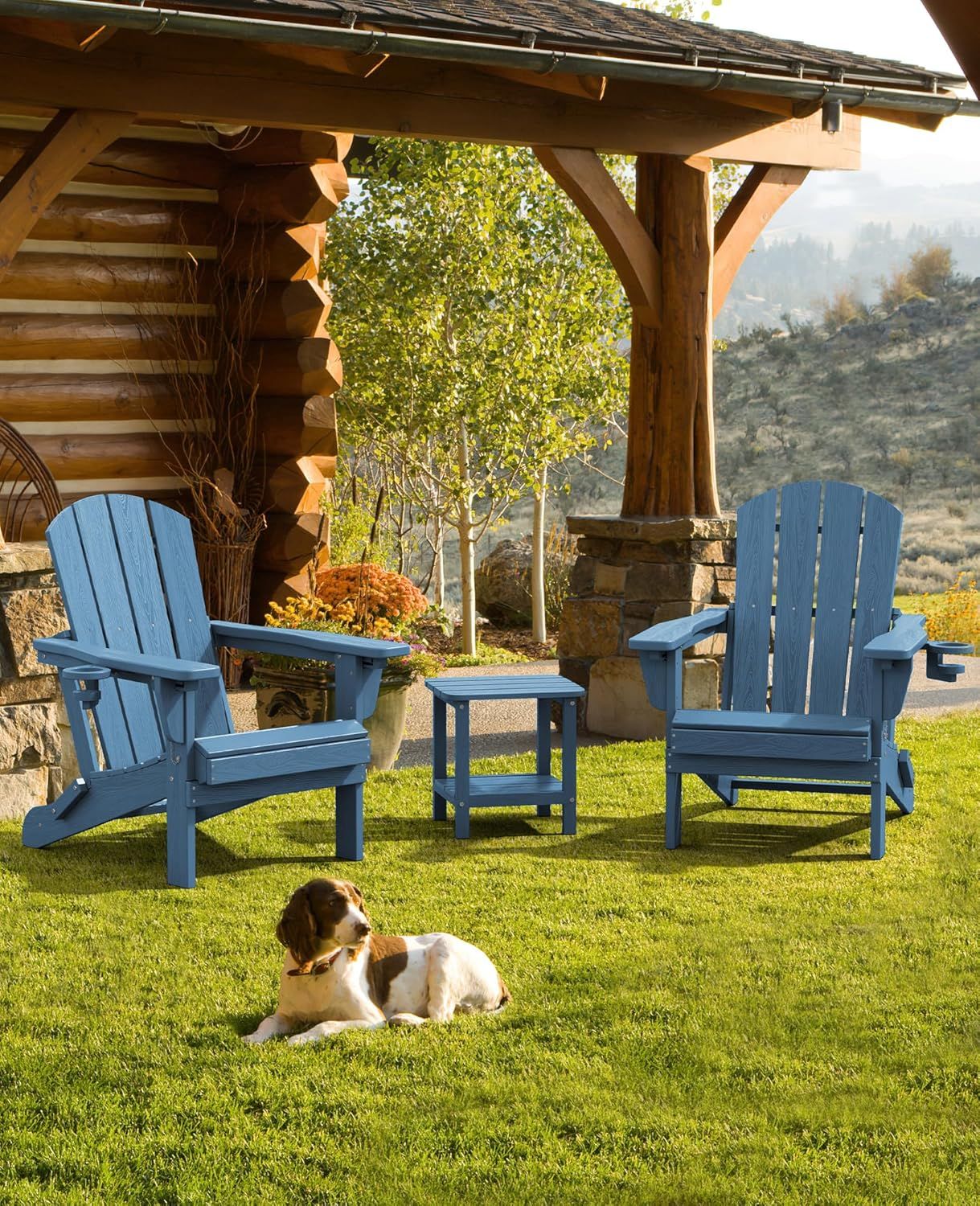 New SERWALL Premium 2PC Folding Adirondack Chair Set All-Weather HDPE Fire Pit Chairs for Outdoor, Patio, Poolside, Garden New in box A041-045-001 /