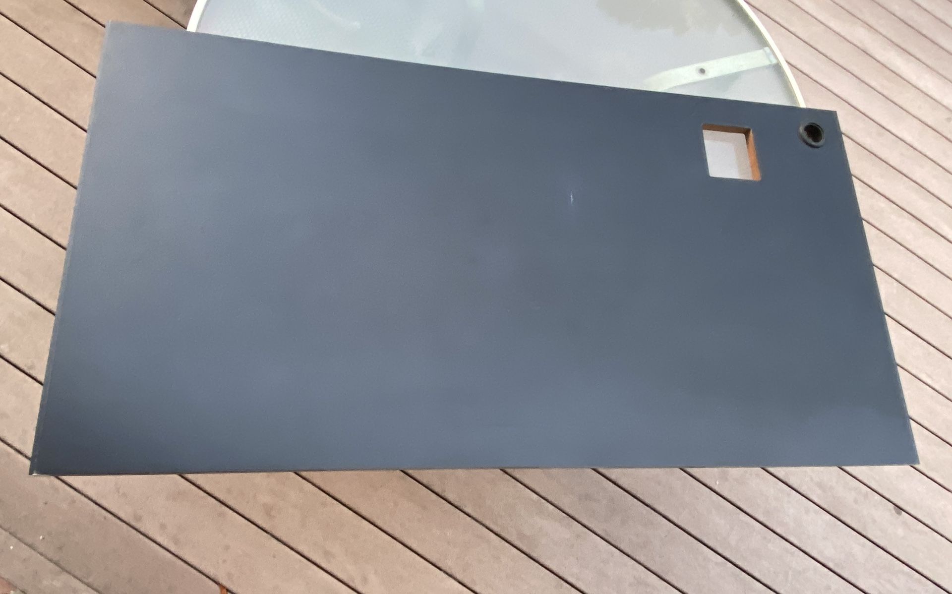 54” x 27 3/4”. 3/4” thick. Pre-drilled hole for electrical cord and could use square cut-out for under mount trash can for easy debris clean up! I have 3 of these. $75 each. Boiling Springs pick up.