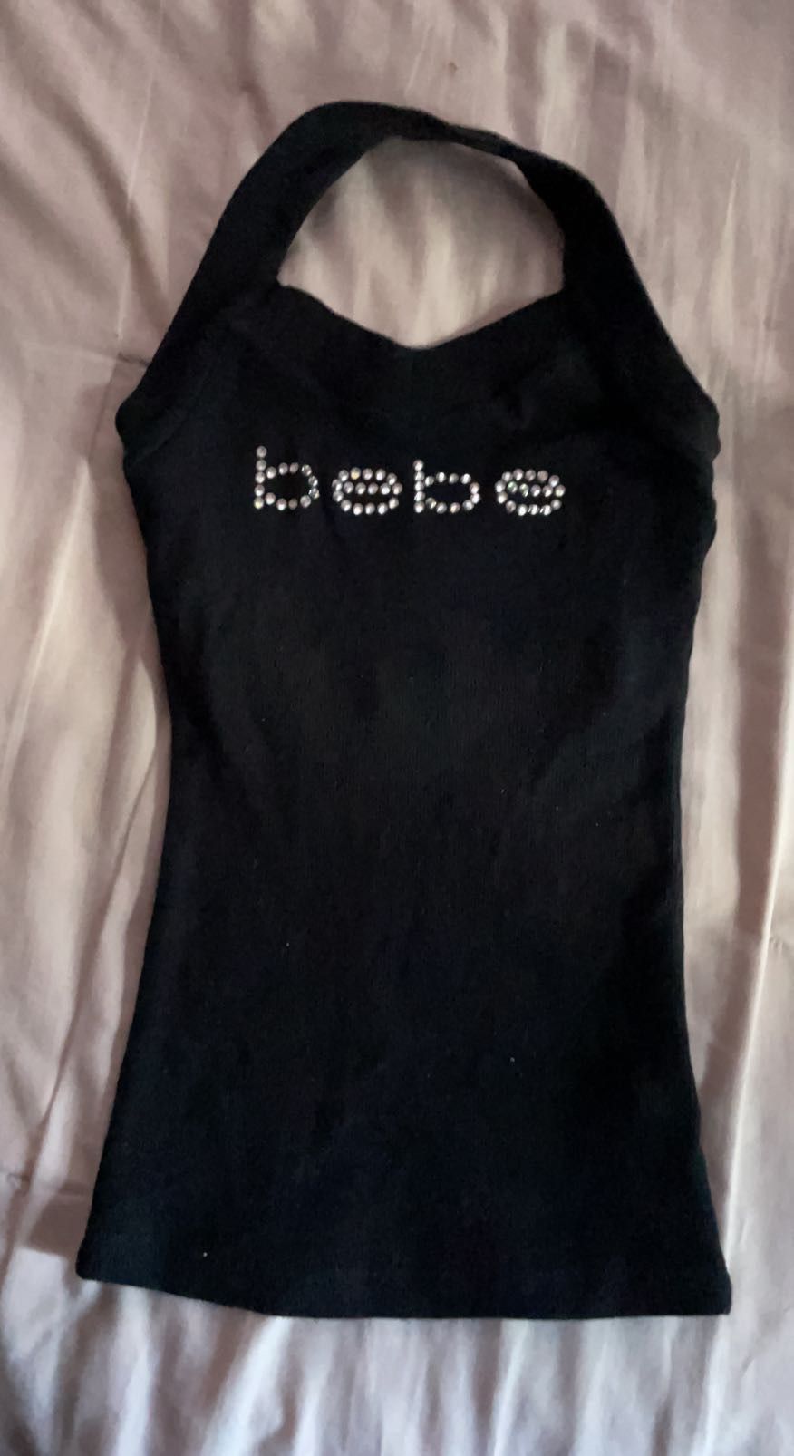 Bebe black halter top Size extra small Stretchy Swarovski crystals