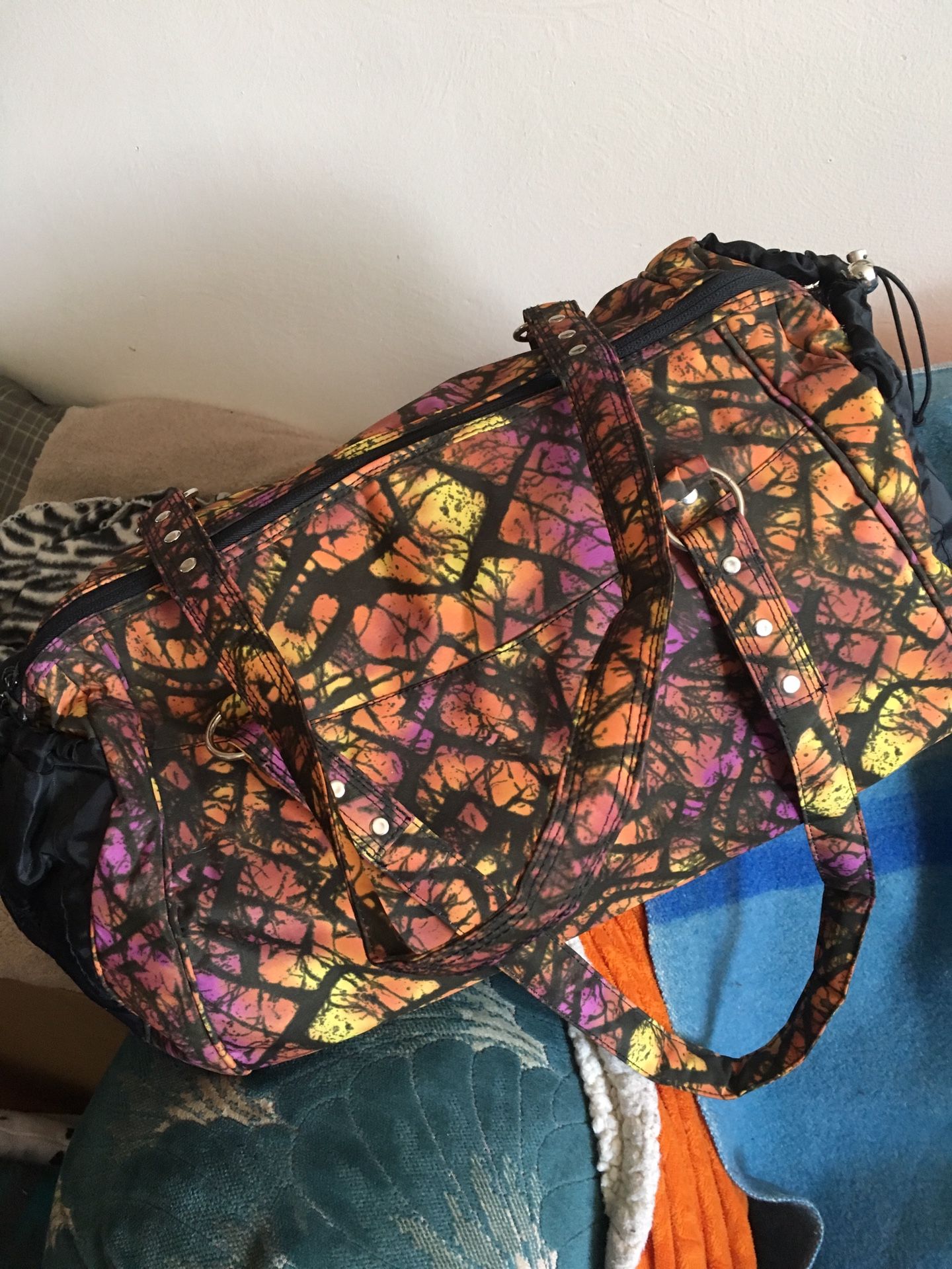 Never used, heavy duty, high quality gym bag. 20 x 14 x 10. 2 side pockets, one is insulated, 2 inside magnetic compartments, odor zapper, really nice bag. Velcro straps on the bottom for your yoga mat or towel. Thanks for stopping by!