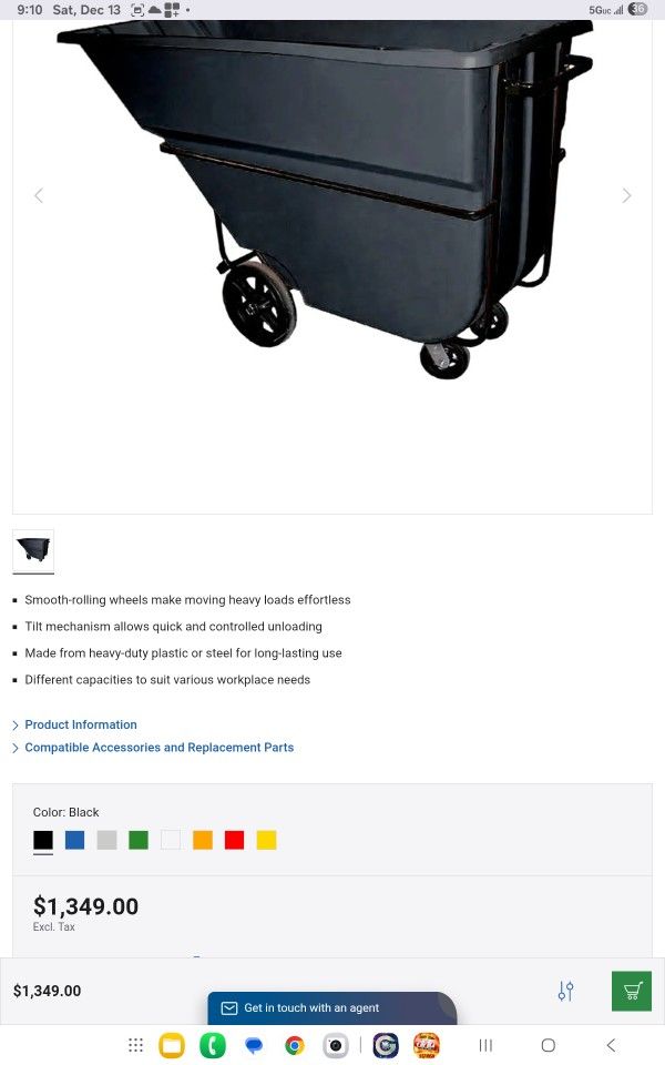 Tilt Truck - Poly Construction - 1.1 yd - Heavy Duty - Black - 2100 lbs Load Capacity Item number: