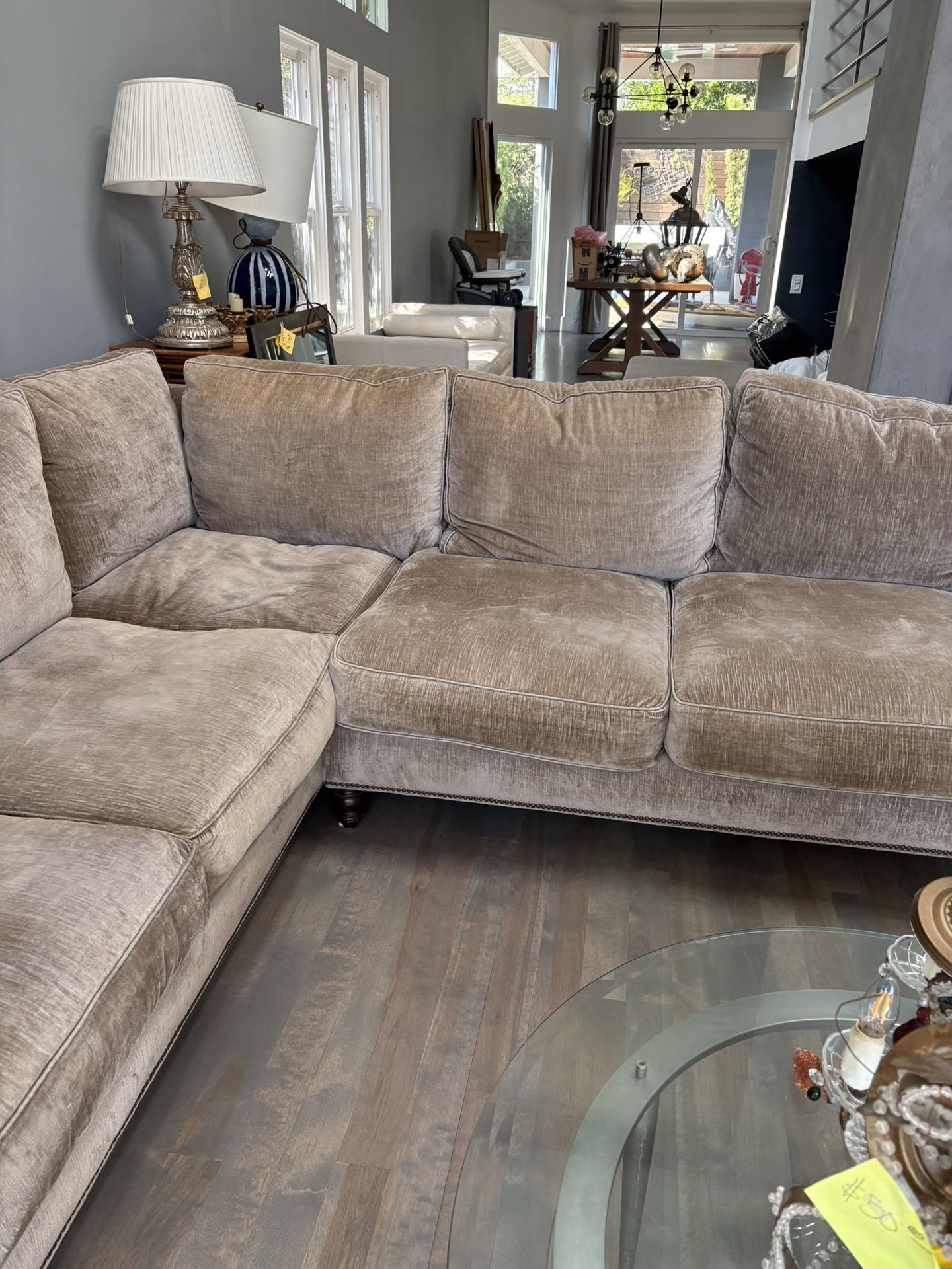 Tan couch velvet styled fabric , large , solid construction- redecorating