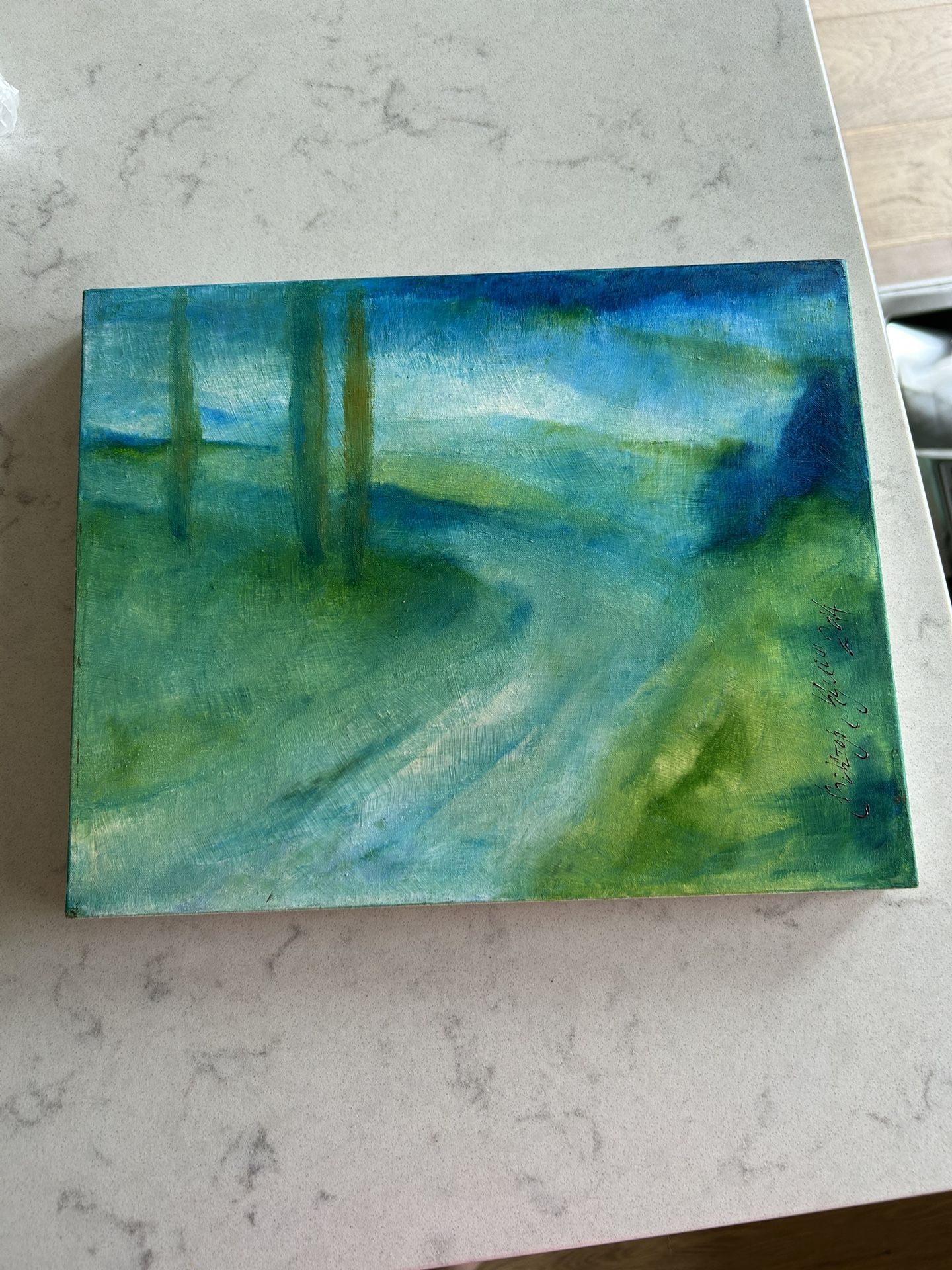 Blues and greens. Lightweight and easy to carry. 9.5x11.5