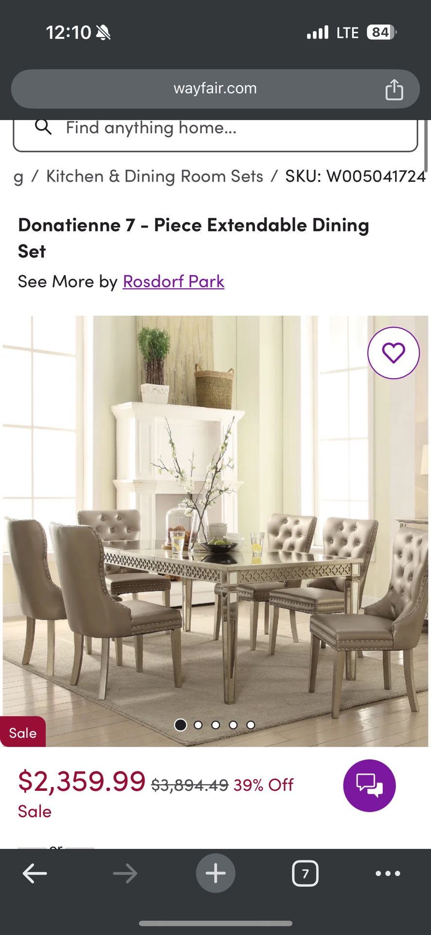 7 - Piece Extendable Dining Set Comes with 1 table + 6 chairs Bought it on wayfair , used 1.5 years and it’s little too big for us
