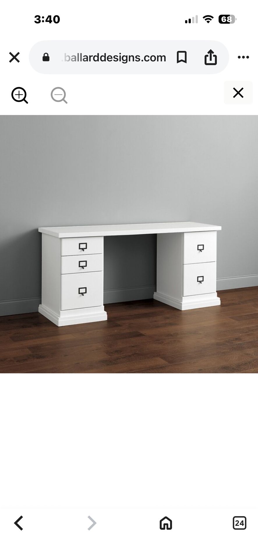 Ballard Design dupes! I have TWO identical desks. Each consists of a wood desktop (6 feet long x 22 inches deep) which rests atop two storage cabinets (as shown in photo). Deaks are 30 inches high. Each cabinet has two ‘pencil’ drawers and one file drawer (letter or legal size, as shown on the left side of the photo). This photo is from the Ballard Design website as I forgot to take photos before the movers wrapped them for transport. No space for them in the new house. They are in excellent condition and can be inspected upon pickup. Each desk comes with a separate glass top which was custom cut to fit the entire top of the desk. Price:$50 each