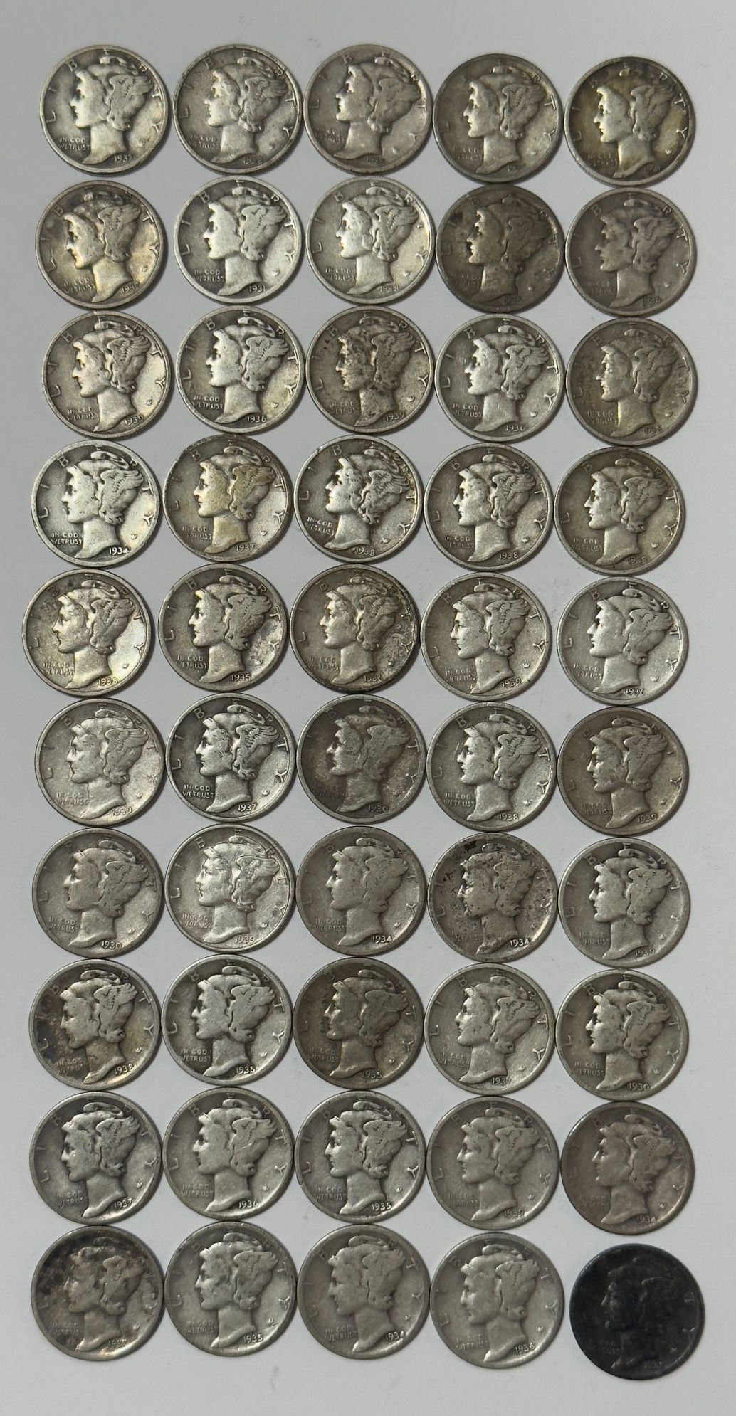 1930’s MERCURY DIMES ROLL (90% Silver) ~ Lot of 50