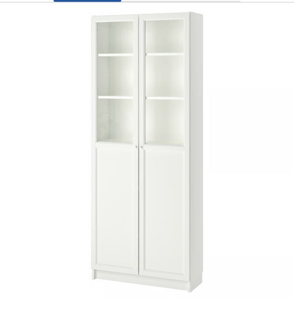 BILLY / OXBERG Bookcase with panel/glass doors, white, 31 1/2x11 3/4x79 1/2 " Like new very well kept clean! Need it gone soon as possible, serious inquiries only please. 2 bookshelves