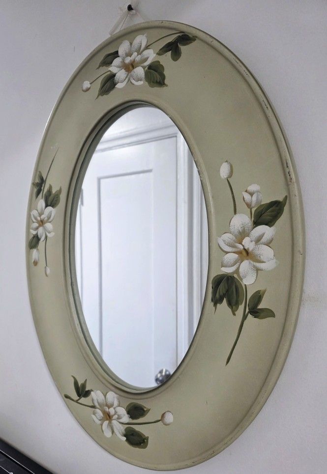 Wonderful Italian oval mirror. This striking piece has a hand-decorated frame painted in a Dutch floral shape and is very detailed, the colors are wonderfully contrasting, but in general a warm and charming look, which together with its dimensions make it versatile as a great addition to any room in the house. Material Other Wood Manufactured 1970s Origin Italy Item location Colchester , United Kingdom Period Mid 20th Century Condition Used Width 20 inch Height 26 inch