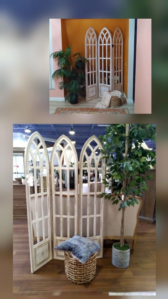 Gorgeous Vintage or Shabby Chic look room divider. Distressed white paint over wood. Heavy and sturdy. Brand new. *See my other listings. *