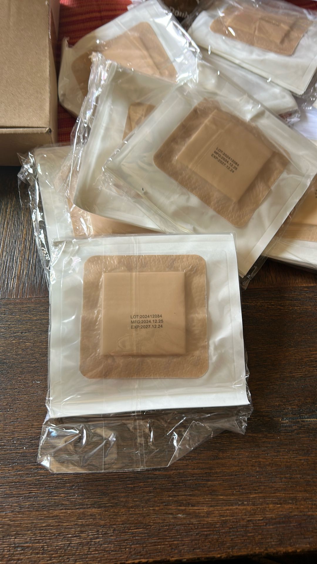 Geiserailie 20 Pcs Silicone Foam Dressing 4''x4'' Highly Absorbent Adhesive Bandages . Foam Dressings for Wound Care Bed Sore Leg Ulcer Diabetic Ulcer Sales are Final Pick up in Whittier